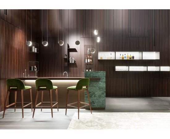 Табурет с каркасом из натурального или лакированного дерева и мягким сиденьем, обтянутым кожей, тканью или бархатом. Это изделие входит в коллекцию стульев, табуретов и банкеток Margaret. Изогнутые формы, пропорциональные ножки, удобное сиденье, необычная деталь – деревянная ручка, встроенная в спинку, и возможность комбинаций с другими предметами мебели этой же коллекции, предлагают идеи для впечатляющих и функциональных жилых или офисных помещений.