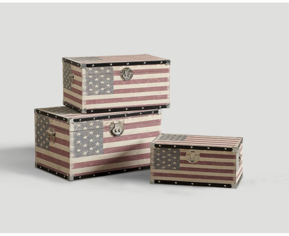 Set 3 bauli rivestiti in tessuto decorato