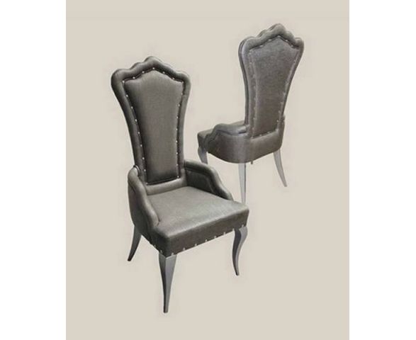 Удобный стул в классическом исполнении. Модель изготовлена из массива древесины и доступна в обивке из текстиля. Высокая мягкая фигурная спинка и сидень украшены мебельными кнопками в тон. Стул имеет фигурные подлокотники продолжающие по стилю спинку.