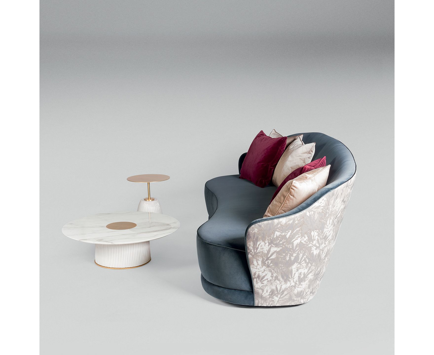 Скульптурные журнальные столики, в которых по разным формам сочетаются благородные материалы, такие как мрамор, металлическая гальваническая отделка и керамика ручной работы, тонко обработанные вручную во Вьетри.