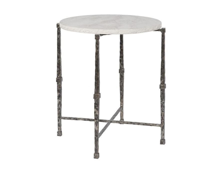 Искусство ковки восходит к 4000 г. до н.э. Металлы, такие как бронза и железо, были выкованы ранним человеком для изготовления ручного инструмента и оружия. Процесс ковки заключается в формовании металла с использованием тепла и давления. Боковой столик Herman сочетает в себе высокую фактуру кованого металла в отделке French Gate в сочетании с гладкой текстурой верхней части скальолы, создавая уникальную композицию материала.