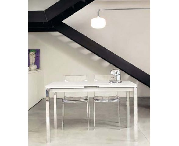 Раскладной стол Aldo выполнен из окрашенной или хромированной стали. Столешница сделана из стекла.
