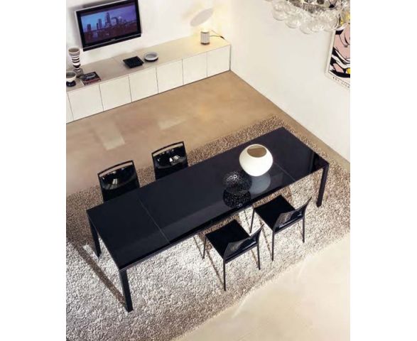 Универсальный стол Chat Double с раздвижными боками. Каркас выполнен из анодированного алюминия. Столешница доступна в стеклянном варианте или из Doluflex.
