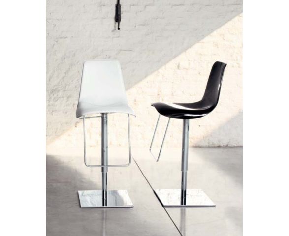 Барный стул Lei hi выполнен из хромированного или окрашенного стального каркаса. Есть подставка для ног. Стул имеет подъемный механизм для изменения высоты. Сиденье и спинка могут быть выполнены из глянцевого пластика, ткани или кожи. Доступна версия стула со спинкой и сиденьем из гнутой фанеры.