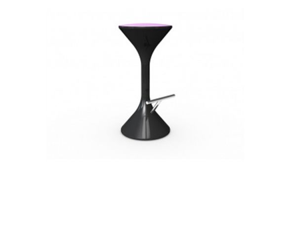 Дизайнерский барный табурет Sym по форме напоминает песочные часы. Каркас изготовлен из окрашенной или хромированной стали. Имеется подставка для ног.