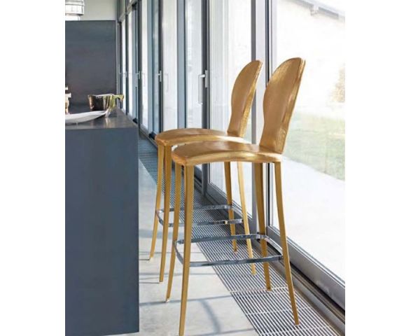Мягкий барный стул Victor с круглой спинкой, соединенной с сиденьем. Каркас сделан из хромированной или окрашенной стали, в качестве наполнителя использован пенополиуретан холодной формовки. Обтянут кожей или тканью. Есть подставка для ног.