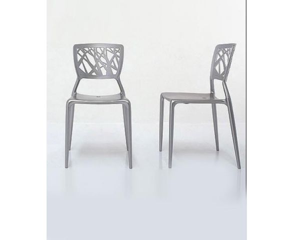 Штабелируемый стул с резной спинкой. Каркас изготовлен из полипропилена. Подходит для использования на улице или в офисе. Доступны версии с гладкой сплошной спинкой.