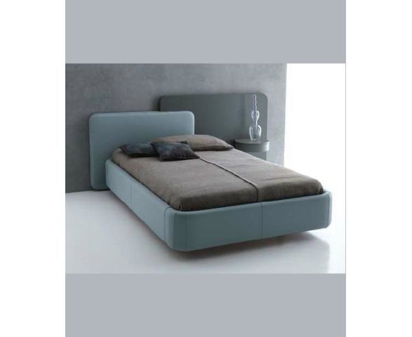 Двуспальная кровать с каркасом из древесины. Изголовье состоит из двух панелей, отличающихся между собой: одна панель из дерева, другая - с коженой обивкой. Общий ассиметрчный дизайн этих двух элементов придает современный стильный вид данной модели. Размеры по вашему выбору.