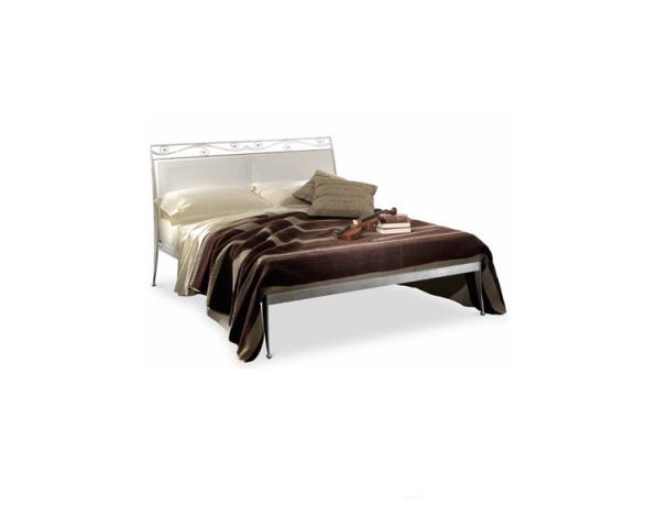 Двуспальная кровать Cesar выполнена в современном стиле с легкими нотками романтизма. Каркас изготовлен из металла, обработанного с помощью лазерной резки. Простое невысокое изголовье с гладкими мягкими панелями и фигурной узорной металлической частью сверху. Панели изголовья в кожаной обивке. В комплект входят панели для основания. Доступны разные размеры.