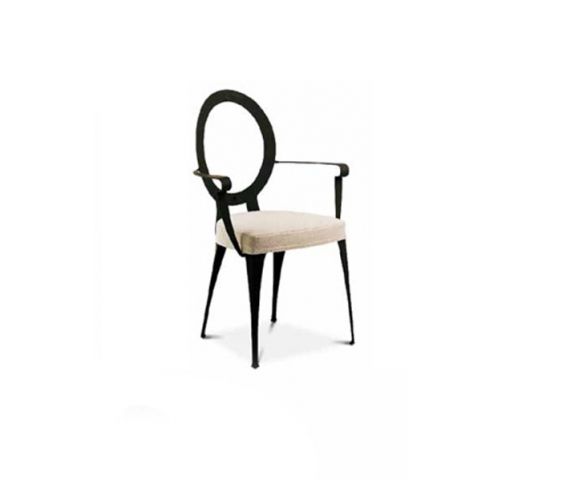 Кресла Miss выполнены в современном стиле с нотками классики. Каркас изготовлен из твердого железа, обработанного с помощью лазерной резки. Он кажется таким легким и воздушным, тонким и почти прозрачным. Но в тоже время он остается устойчивым и очень прочным. Подлокотники без мягких вставок загнуты вручную. Спинка - медальон и сиденье с наполнителем из пенополиуретана. Съемная обивка может быть выполнена из текстиля или кожи. Каркас отпалирован вручную.