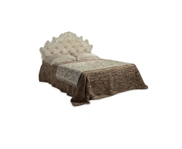 Двуспальная кровать Sissi capitonne выполнена в классическом стиле. Каркас изготовлен из металла и дерева. Высокое фигурное резное изголовье. По верху оно украшено цветочными орнаментами. Мягкая центральная часть в несъемной обивке из атласа или вельвета украшена стежкой капитоне с пуговицами. Короткие ножки кабриоли. Кровать полностью украшена вручную. В комплект входят деревянные рейки. Доступны разные размеры, а также версии с ящиком для хранения вещей.