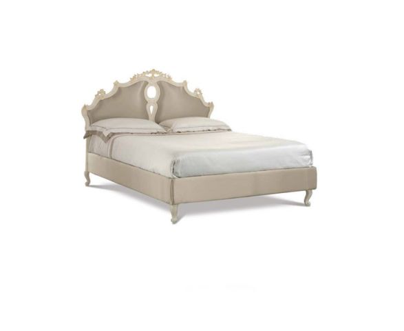 Двуспальная кровать Sissi stuffed выполнена в классическом стиле. Каркас изготовлен из металла и дерева. Высокое фигурное резное изголовье поделено на две условных части резным элементом. По верху оно украшено цветочными орнаментами. Мягкая часть изголовья в гладкой несъемной обивке. Короткие ножки кабриоли. Кровать полностью украшена вручную. В комплект входят деревянные рейки. Доступны разные размеры, а также версии с ящиком для хранения вещей.