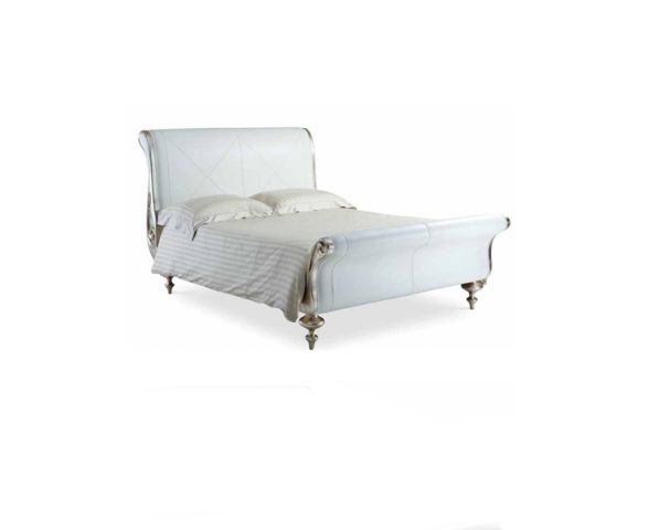 Двуспальная кровать Vivaldi выполнена в современном стиле. Каркас изготовлен из твердой древесины. Высокое мягкое изголовье слегка завито сверху и обтянуто несъемной кожаной обивкой с декоративной прострочкой. А также дополнено деревянными резными элементами по бокам. Низкое изножье повторяет форму изголовья и аналогично обито кожей с декоративной прострочкой. Короткие пухлые фигурные ножки. Ручная отделка. Доступны разные размеры.