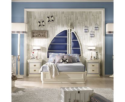 Мебельный гарнитур для детсткой комнаты. Cordage - это новая линия мебели для детей, в которой уникальные элементы морского стиля переплетаются с нежными пастельными тонами. Для мальчиков предлагается вариант в двух цветах с патинированной лакированной отделкой и веревкой темно-синего цвета; для девочек вариант с красным деревом Фьюжн с лакированной веревкой. В гаритур входят: кровать, тумбочка на 3 ящика, шкаф-купе.