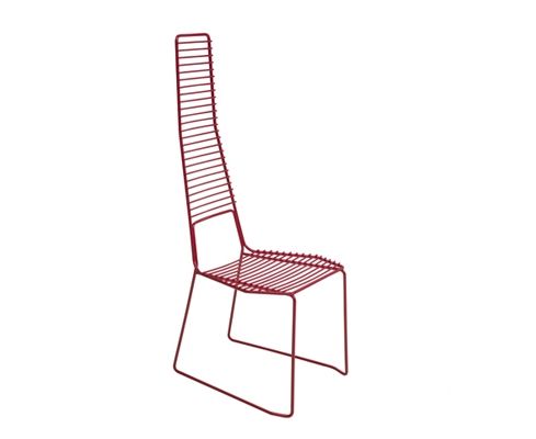 Окрашенный оцинкованный стул. Подходит для использования как в закрытых помещениях, так и на открытом воздухе. Данная модель доступна с двумя вариантами спинки: высокой и узкой - для использования за столом, и с широкой и низкой - для использования вне стола. Простота формы сочетается с необычностью дизайнерской мысли.