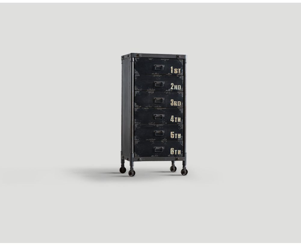 Cassettiera 6 cassetti, con ruote, in metallo finitura Nero decapato
