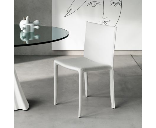 Стул простой формы с невысокой квадратной спинкой. Стальной каркас обит тканью, мягкой или синтетической кожей, крокодиловой кожей. Обивка несъемная.
