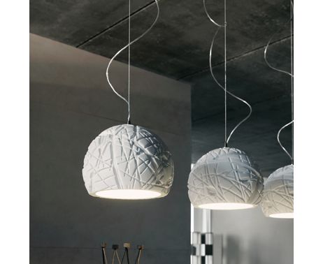Потолчнный подвесной светильник, выполненный из белого полиуретана.