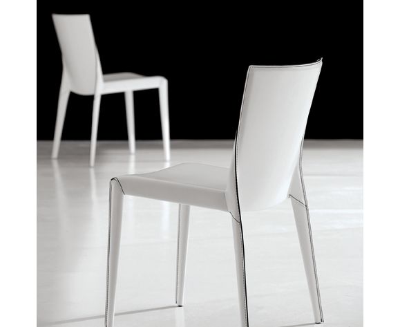 Стул без подлокотников простой формы, невысокая квадратная спинка. Каркас сделан из стали и полностью скрыт за кожаной обивкой.