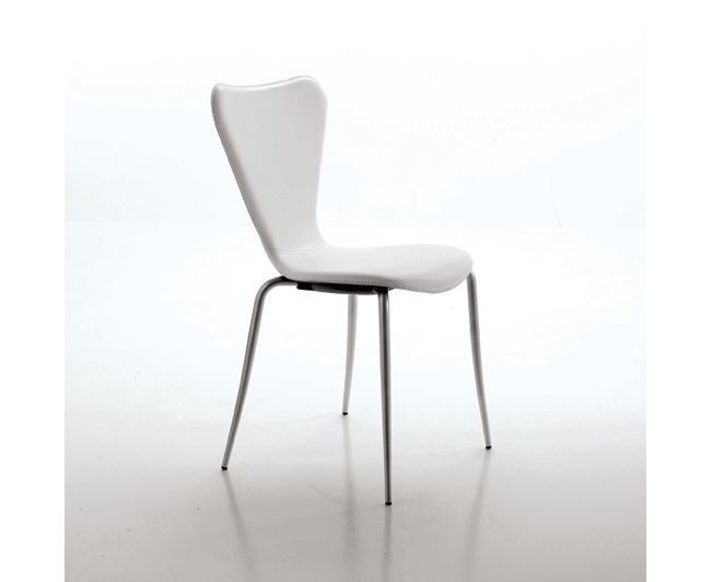 Стул без подлокотников с невысокой спинкой. Коллекция стульев DANDA включает модели на четырех тонких ножках или вращающийся на ножке - звездочке на колесиках. Модель на колесиках можно регулировать по высоте. Стальной каркас окрашенный в матовое серебро. Сидение и спинка обтянуты кожей. Швы стандартные.