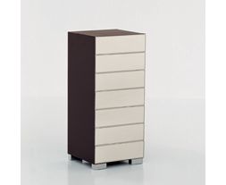 Коллекция DANDY включает в себя тумбочки с двумя или семью ящиками и комод с 4/8 ящиками. Деревянный каркас в отделке орех Canaletto, венге, окрашенный в белый или серебряный цвет. Ножки сделаны из нержавеющей стали. Передняя часть ящиков обита кожей.