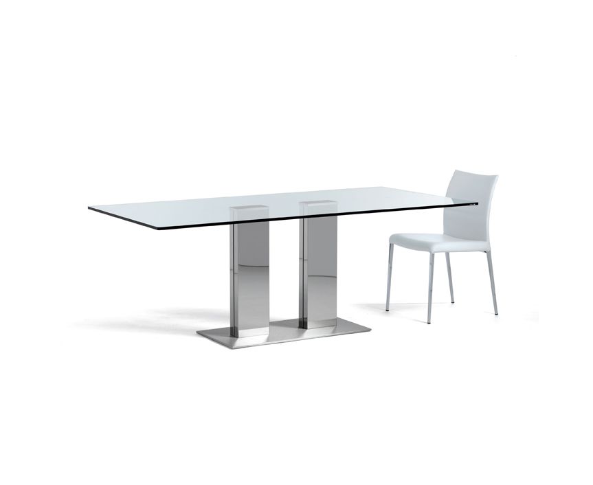 Коллекция столов ELVIS включает раздвижные и фиксированные столы. Столы сделаны с основанием из нержавеющей стали с защитным покрытием против отпечатков пальцев и ножками из нержавеющей стали. Столешница всех моделей (кроме TURN) сделана из закаленного прозрачного стекла 15 мм, раздвижные части из прозрачного метакрилата (для раздвижной версии) или глянцевого белого ламината (версия TURN).