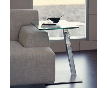 Журнальный столик LAP Giorgio Cattelan фабрики Cattelan Italia с прямоугольной или фигурнойя столешницей из прозрачного стекла 12 мм. Основание из нержавеющей стали и ножка из хромированной стали или обитая кожей.