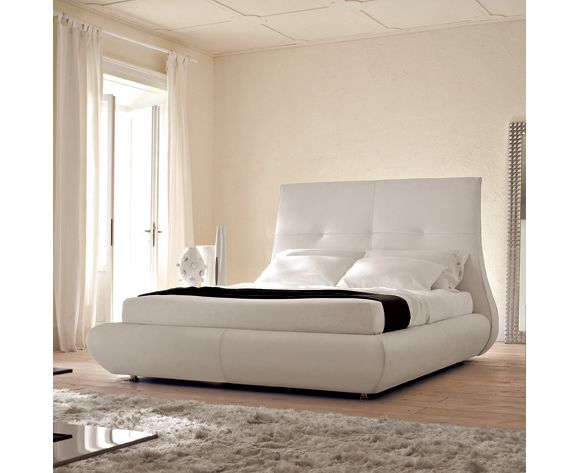 Изящная, шикарная двуспальная кровать, выполненная в современном стиле. В качестве обивки используется ткань, мягкая или синтетическая кожа, крокодиловая кожа. Высокое изголовье украшено прострочкой и крупными мебельными пуговицами. В основании кровати можно разместить контейнер для хранения вещей.