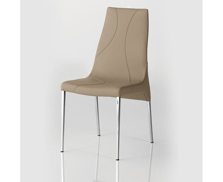 Оригинальная модель стула с плавными линиями, спинка слегка отклонена назад и повторяет форму тела. Стул с хромированным, белым или черным стальным каркасом. Обивка из кожи.