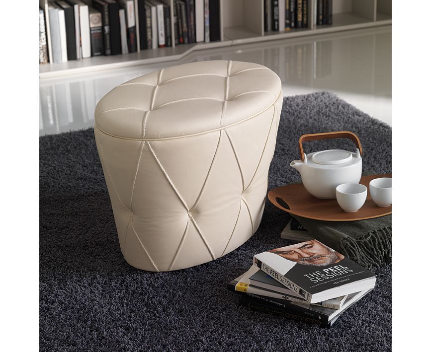Пуф обитый мягкой или синтетической кожей украшен стежкой капитоне.