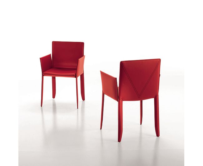 Стул с подлокотниками. Очень легкий стул из коллекции PIUMA. Предлагаются модели с подлокотниками или без. Стальной каркас полностью обит кожей. Швы стандартные. Сзади спинка украшена прострочкой.