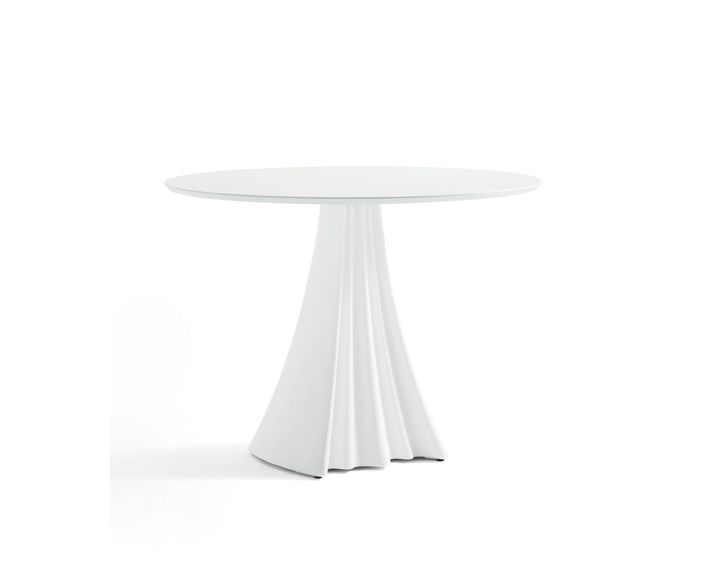 Стол со столешницей из древесины или стекла. Ножка необычная, фигурная изготовлена из полиэтилена. Топ круглой формы. Предлагаются различные размеры.