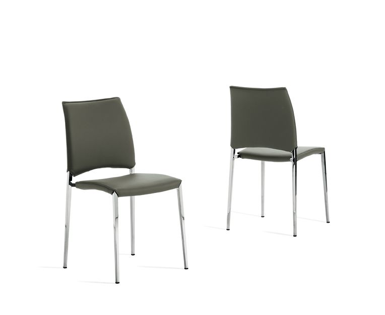 Стул с каркасом из хромированной стали, черного хрома, матового хрома, или с белым, черным, графитовым, серым, устричным или матовым серым стальным каркасом. Сидение и спинка предлагаются в обивке из ткани, мягкой или синтетической кожи, крокодиловой кожи.