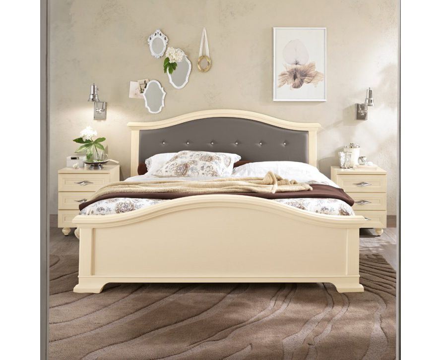 Двуспальная кровать, выполненная в современном классическом стиле прекрасно подойдет для любого интерьера. Изголовье и изножелье повторяют друг друга, что придает модели завершенности и симметрии. Невысокое изголовье имеет мягкую вставку в кожаной отделке, декорированную мебельными пуговицами.
