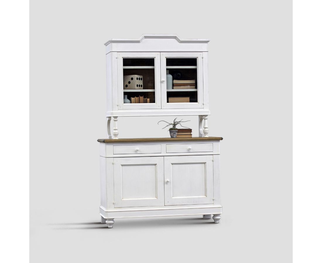 Credenzina 4 ante + 2 cassetti, in legno finitura laccato Bianco Vissuto, top in legno vecchio finitura Vintage Chiaro