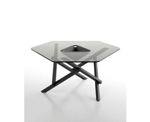 Вдохновленный изменяемой геометрией модульной структуры, получился этот журнальный столик. Столешница лежит на шести квадратных алюминиевых профилях, зацепленных друг за друга по кругу, образуя самостоятельную структуру. В центре топа имеется контейнер, где можно хранить различные мелкие предметы. Топ имеет форму неправильного шестиугольника и поддерживается ножками, что, безусловно, служит функциональным потребностям, но еще и добавляет характер к дизайну.