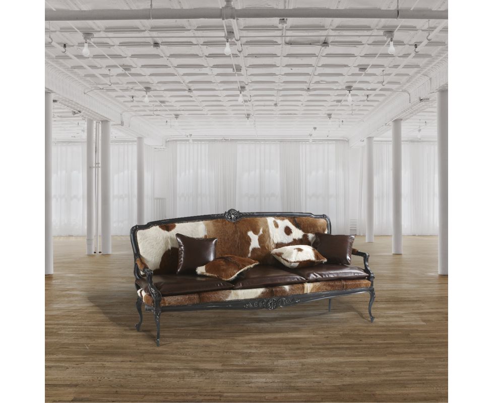 Трехместный диван на деревянном каркасе, выполненный в современном классическом стиле. Невысокая спинка, украшена резными элементами. Подлокотники с мягкими вставками. Модель стоит на ножках кабриоли.