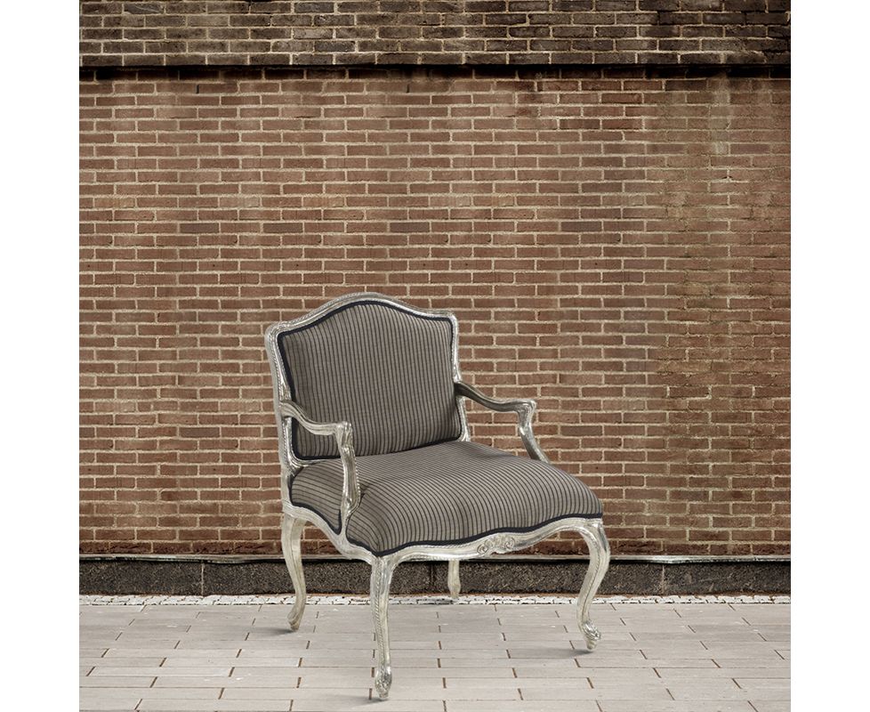Кресло, выполненное в современном классическом стиле. Деревянный каркас украшен резными элементами. Подлокотники с мягкими вставками. Ножки кабриоли.