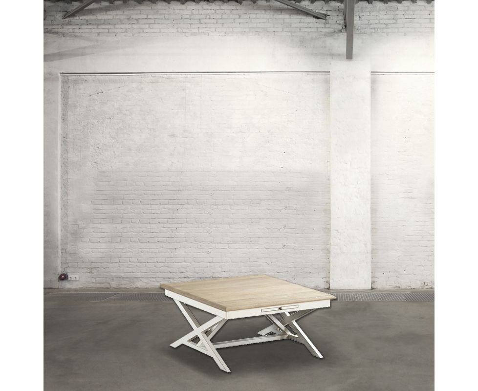 Журнальный столик из натурального дуба. Основание из перекрещенных деревянных планок.