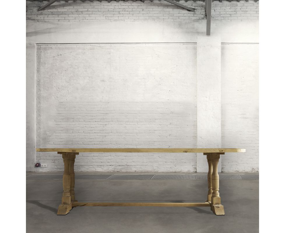 Обеденный стол из вяза на четырех ножках.