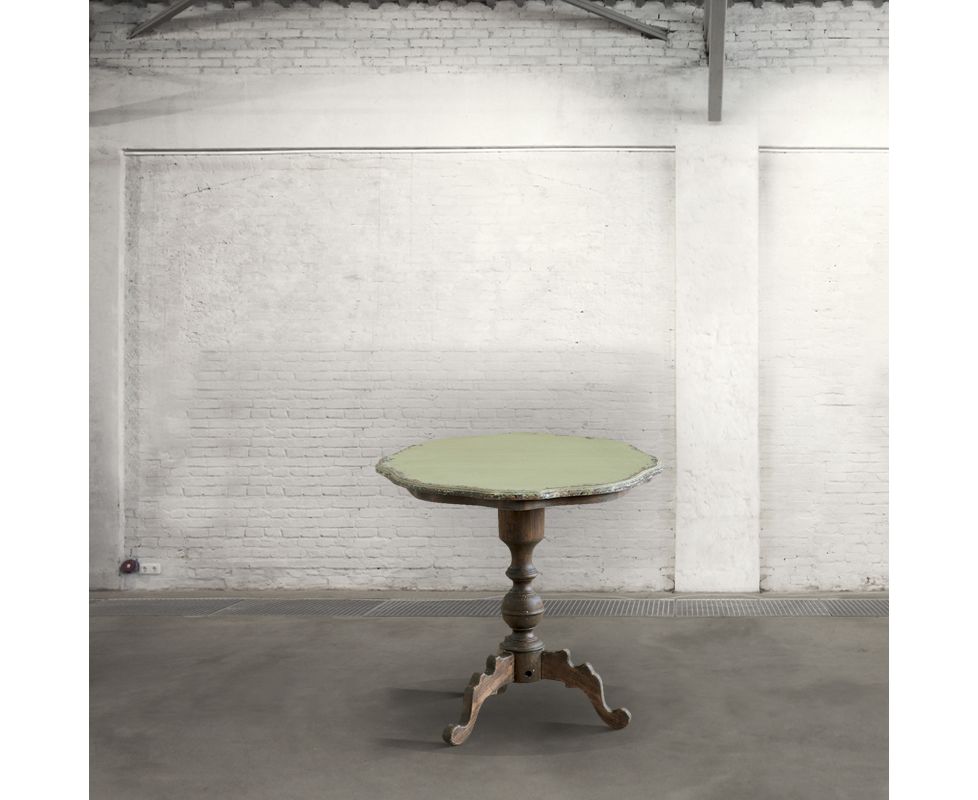 Круглый обеденный стол из древесины. Одна фигурная ножка.