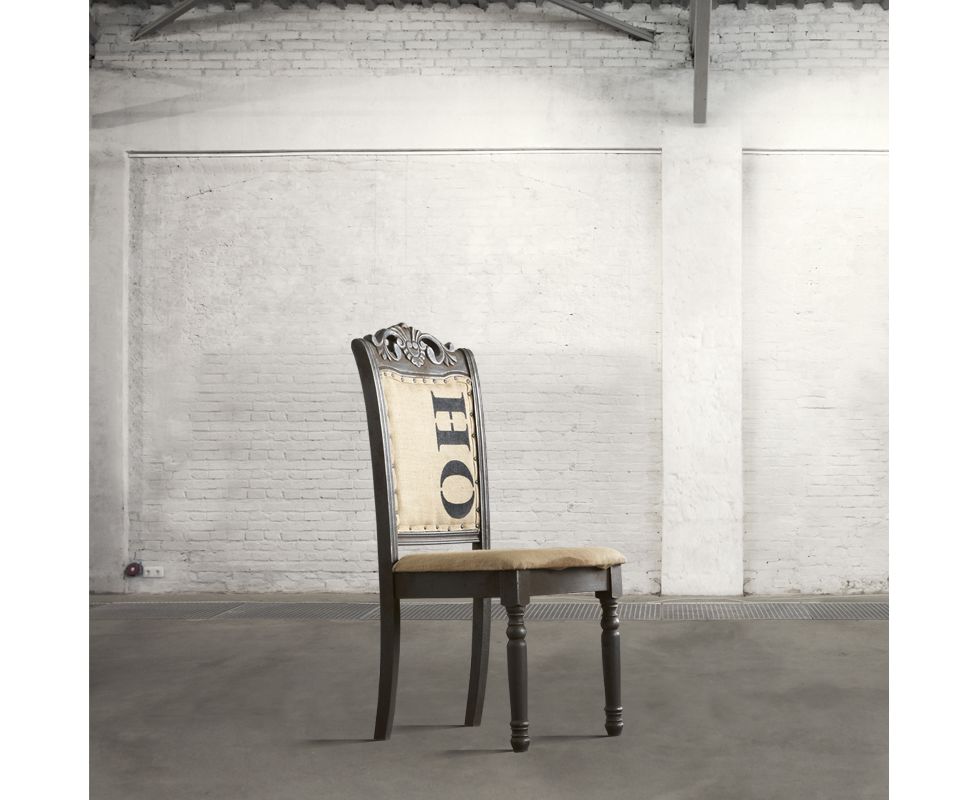 Стул с высокой спинкой, украшеной резным элементом. Фигурные ножки.