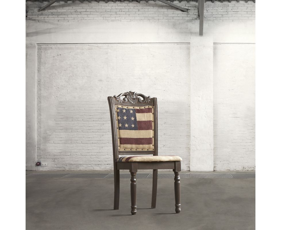 Стул с высокой спинкой, украшеной резным элементом. Фигурные ножки.