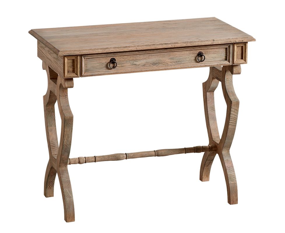 Прямоугольный столик из дуба. Устойчивые изогнутые ножки. Один выдвижной ящик.