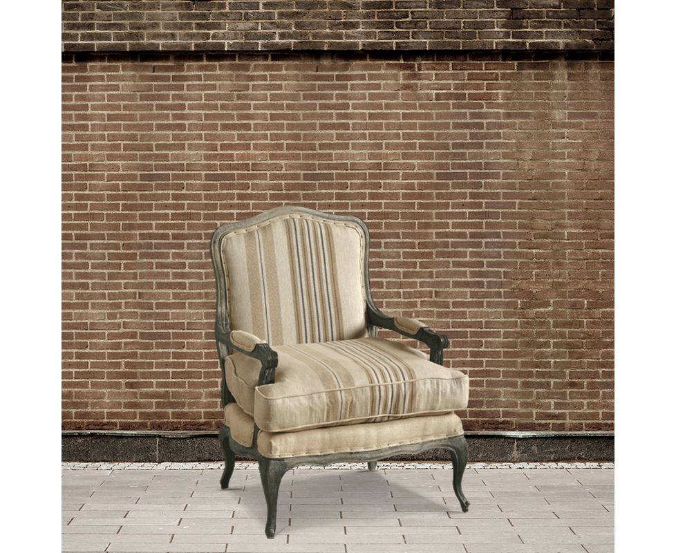 Кресло, выполненное в современном классическом стиле. Деревянный каркас украшен резными элементами. Мягкая подушка сиденья не закреплена на каркасе. Подлокотники с мягкими вставками. Ножки кабриоли.