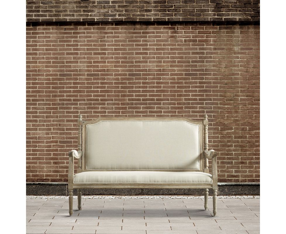 Кушетка на деревянном каркасе, выполненная в классическом стиле. Высокая мягкая спинка украшена резными элементами. Подлокотники с мягкими вставками. Фигурные резные ножки.