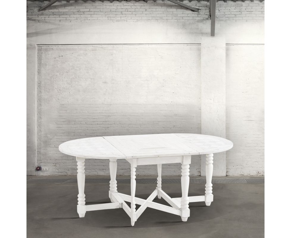 Овальный обеденный стол из сосны. Шесть опорных ножек соединенных между собой для большей устойчивости.