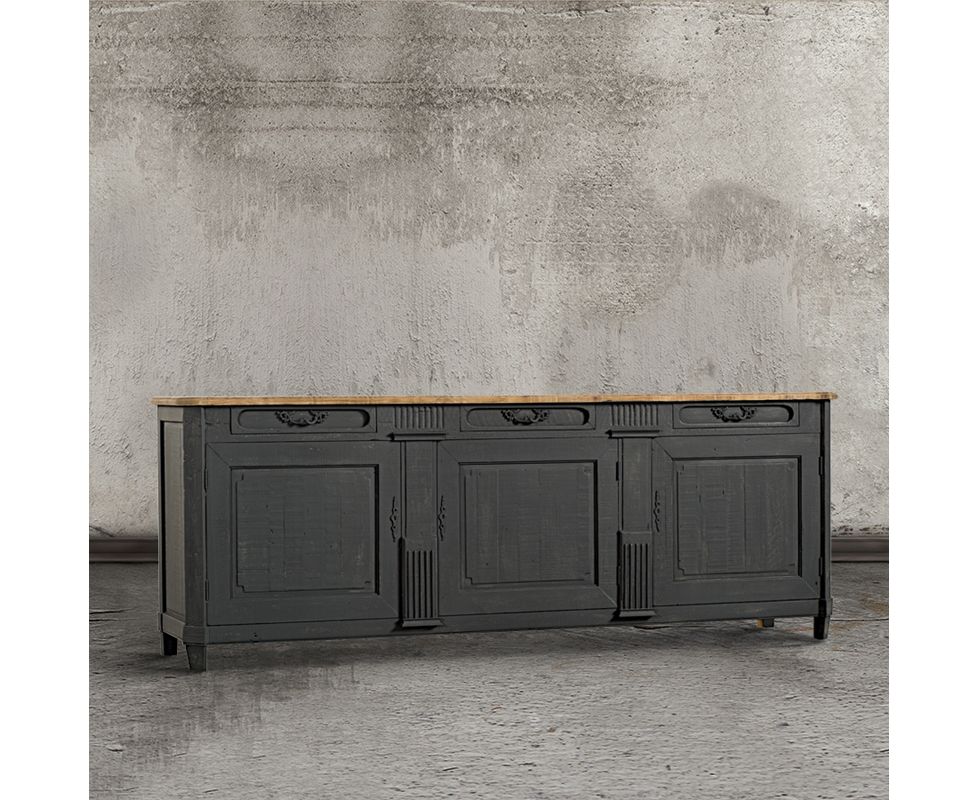 Буфет из натурального дерева на четырех ножках. Три выдвижных ящика, три отделения с распашными дверцами.