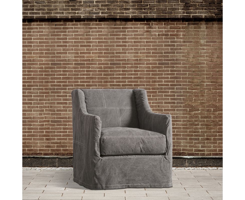 Кресло на деревянном каркасе, полностью скрытым за текстильным чехлом. Мягкая подушка сиденья не закреплена на каркасе.