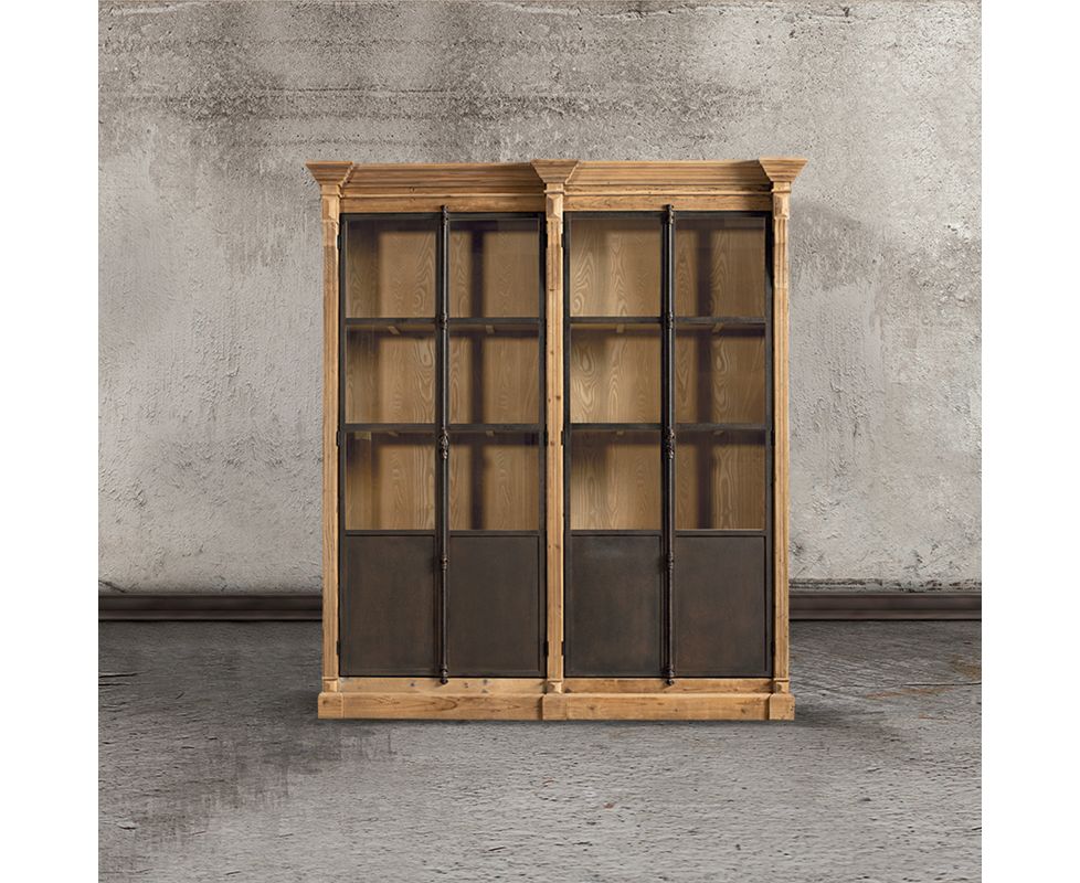 Шкаф с каркасом из древесины. Открытые и закрытые полки.